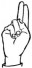На ћирилици написано ВУКОСЛАВ ПАЉЕВШТИЦА састоји се из 18 слова [?]. Исписано ћириличном једноручном азбуком за глувонеме: